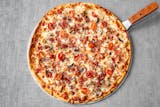 Tomato sauce, sausage, pepperoni, mushrooms, bell peppers, onions, black olives.