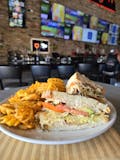 sliced blackened chicken breast, blackened aioli, mozzarella cheese, sliced tomato, arugula, & fried onion straws on sliced sourdough with your choice of side